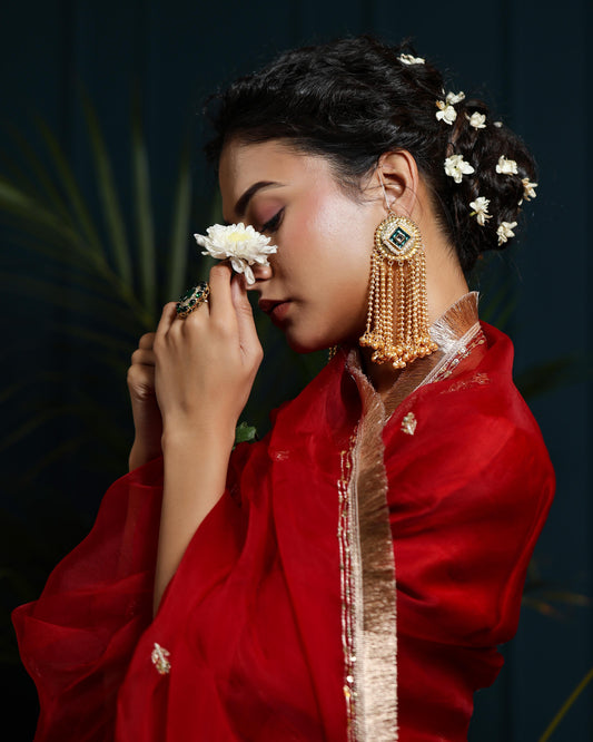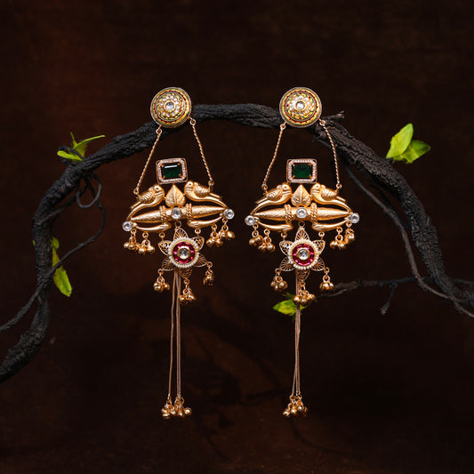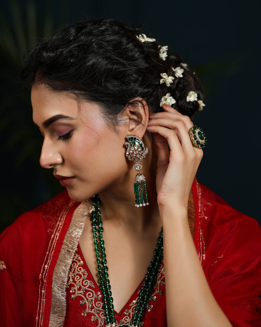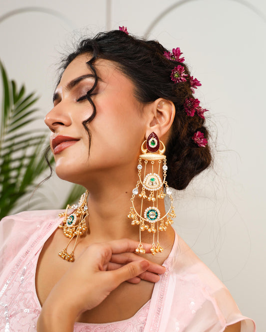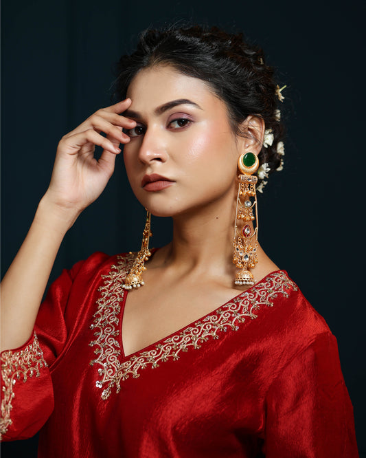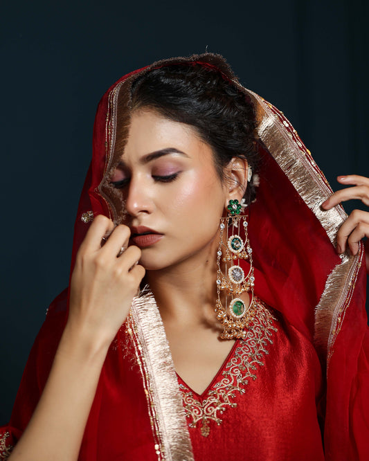 Mehar Chaand Latkan Green Earrings (Invisible Kaan Chains Included)