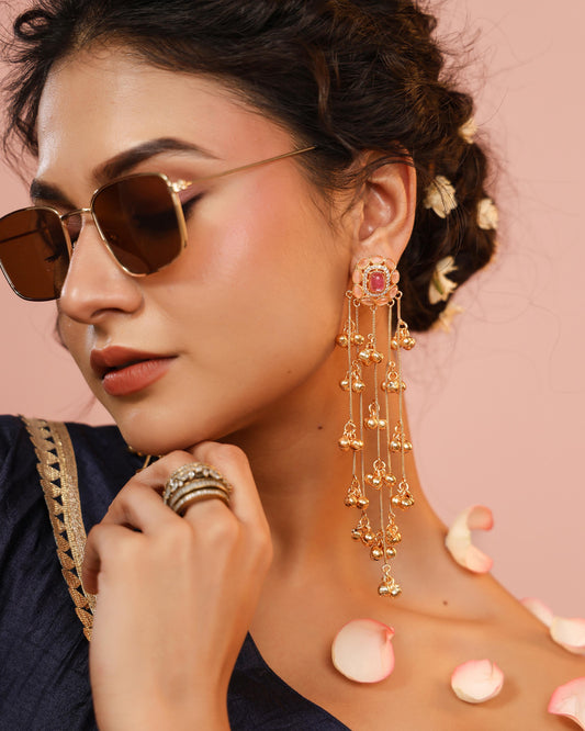 Mehar Chaand Latkan Pink Earrings (Invisible Kaan Chains Included)
