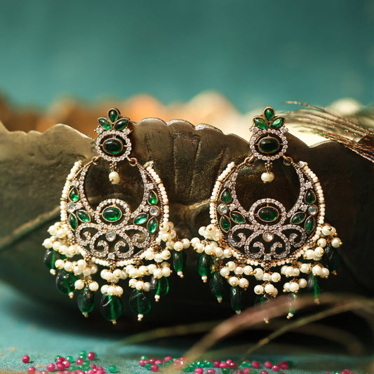 Hoor Mint Jhumka Earrings (Invisible kaan chains included)