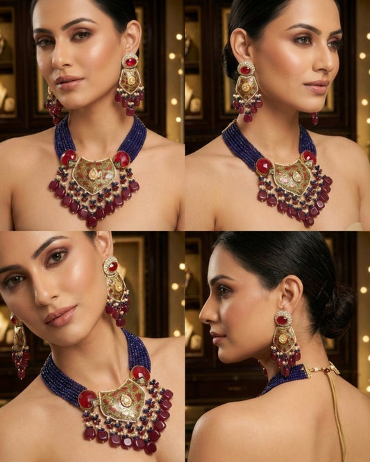 Tavisha Aquamarine Meenakari Charm Necklace Set
