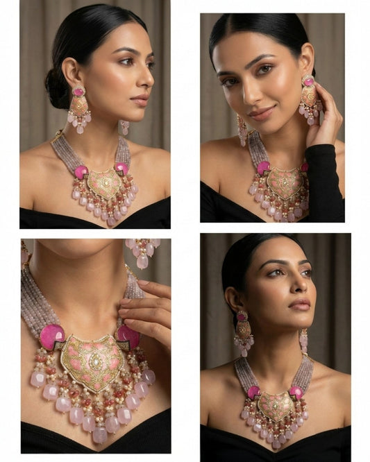 Ruhaniyat Carnation Pink Choker Necklace Set