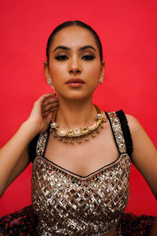 Tavisha Aquamarine Meenakari Charm Necklace Set