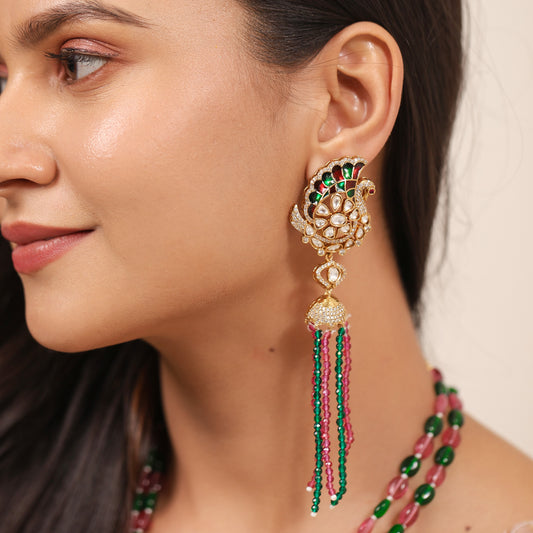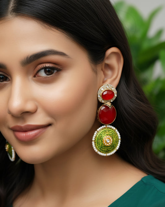 Hoor Mint Jhumka Earrings (Invisible kaan chains included)