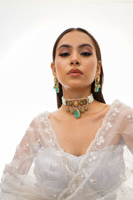 Meher Grey Meenakari Fusion Necklace Set
