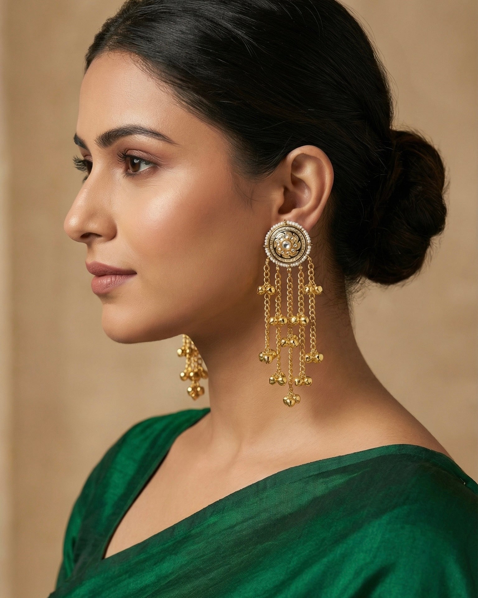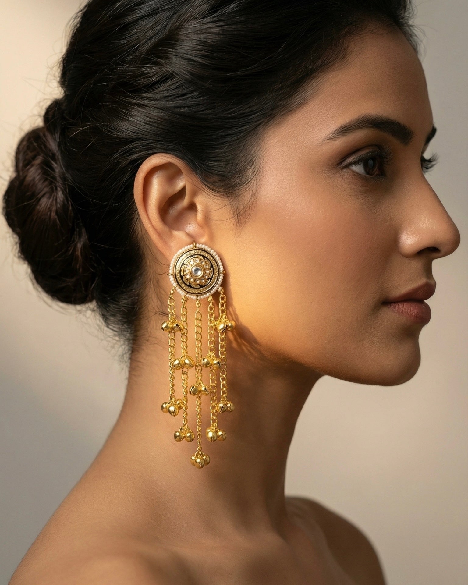 IN THE BOX : A pair of earrings with invisible kaan chains.