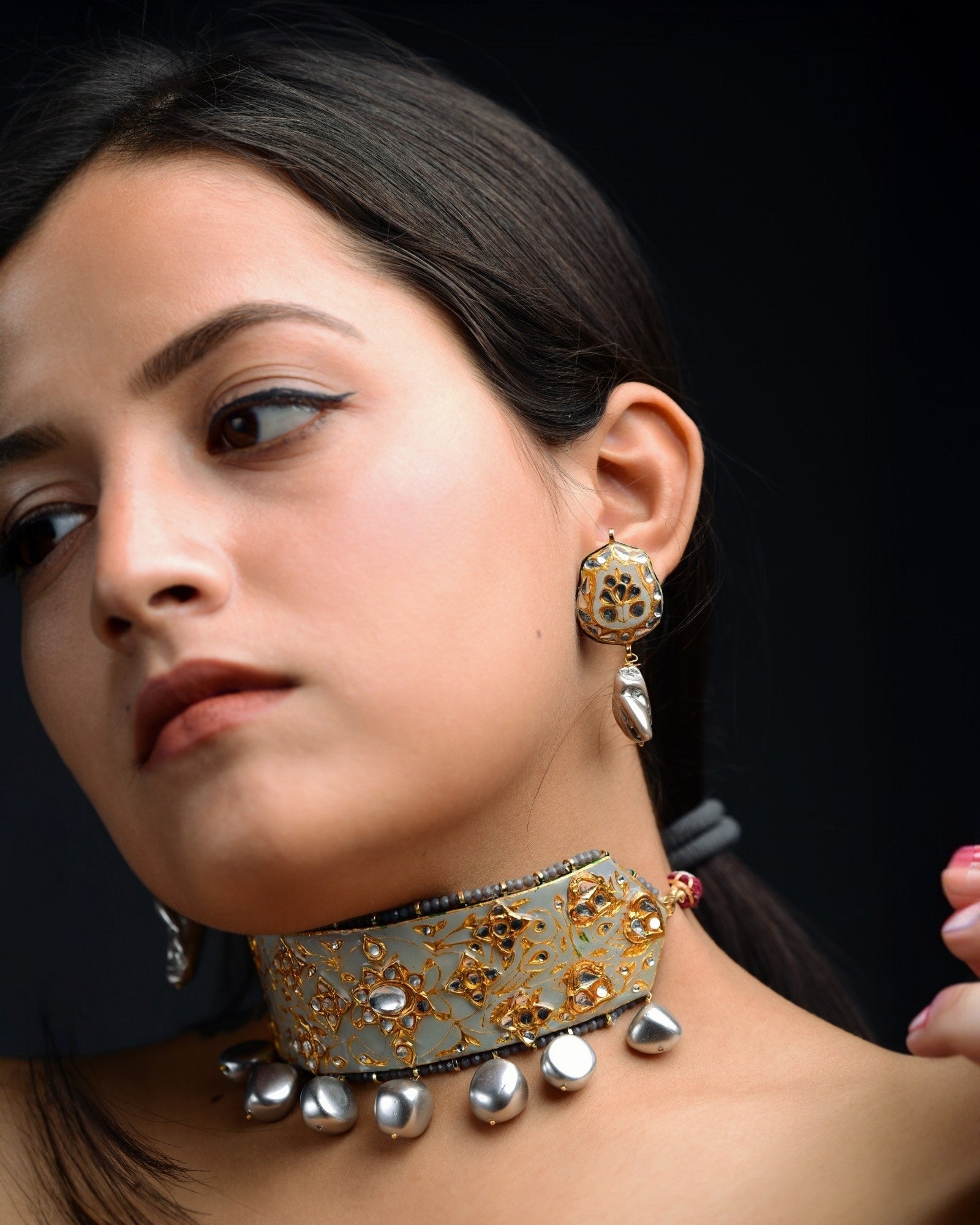 IN THE BOX : One Choker Necklace with a pair of earrings.