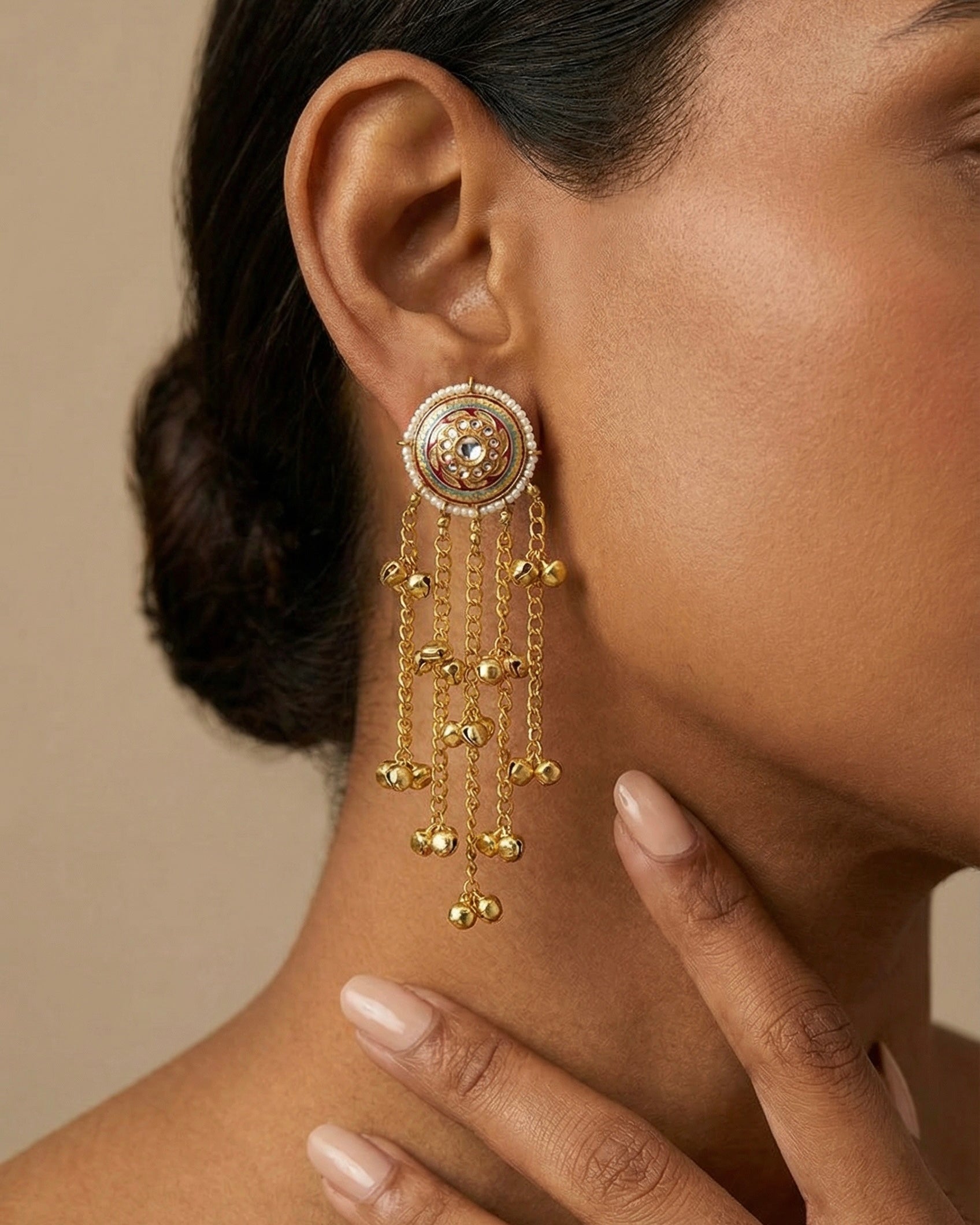 IN THE BOX : A pair of earrings with invisible kaan chains.